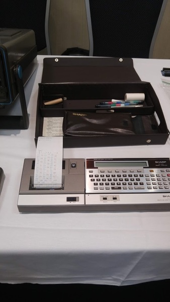 A Sharp PC-1500 pocket computer.